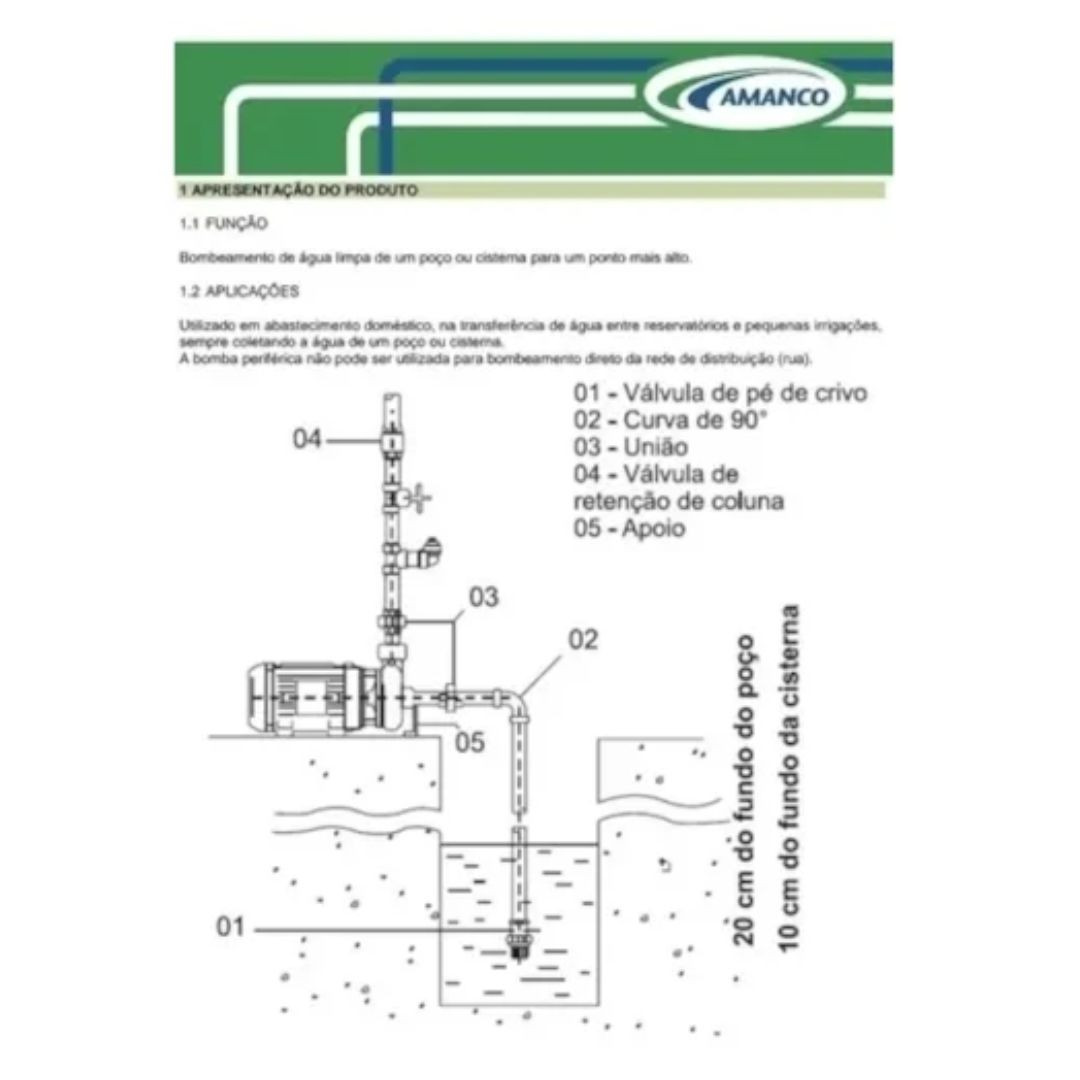 Utilize válvula de pé com crivo para evitar entrada de impurezas.