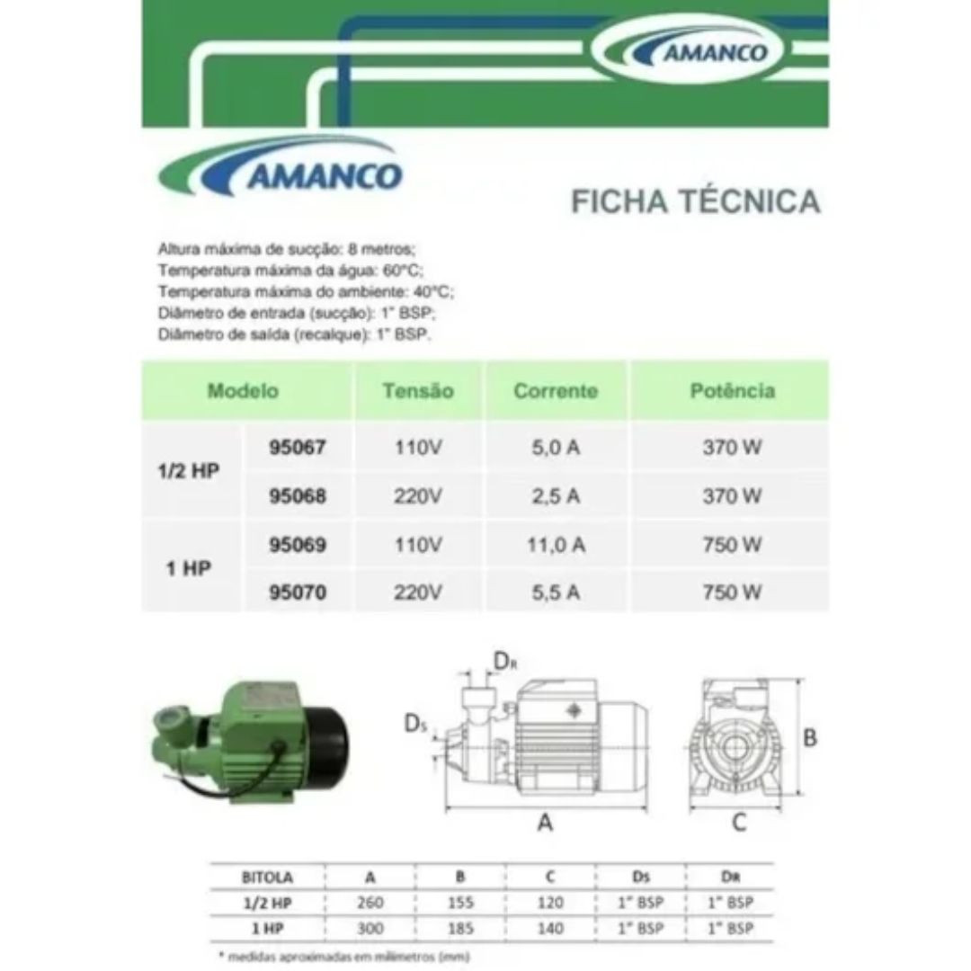 Bomba d?Água Amanco Wavin 1HP ? 220V
