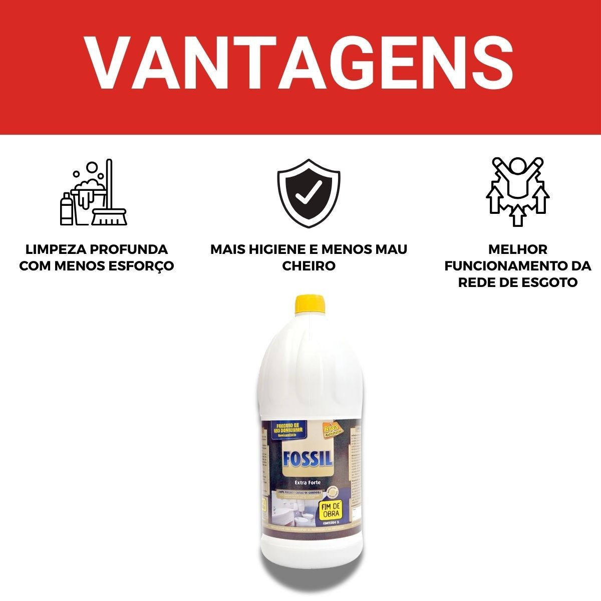 Experimente o poder de limpeza extraordinário do Fossil Extra Forte e mantenha seu sistema de esgoto funcionando de maneira eficiente e livre de problemas. Adquira agora e desfrute de um ambiente limpo e higienizado em sua residência!