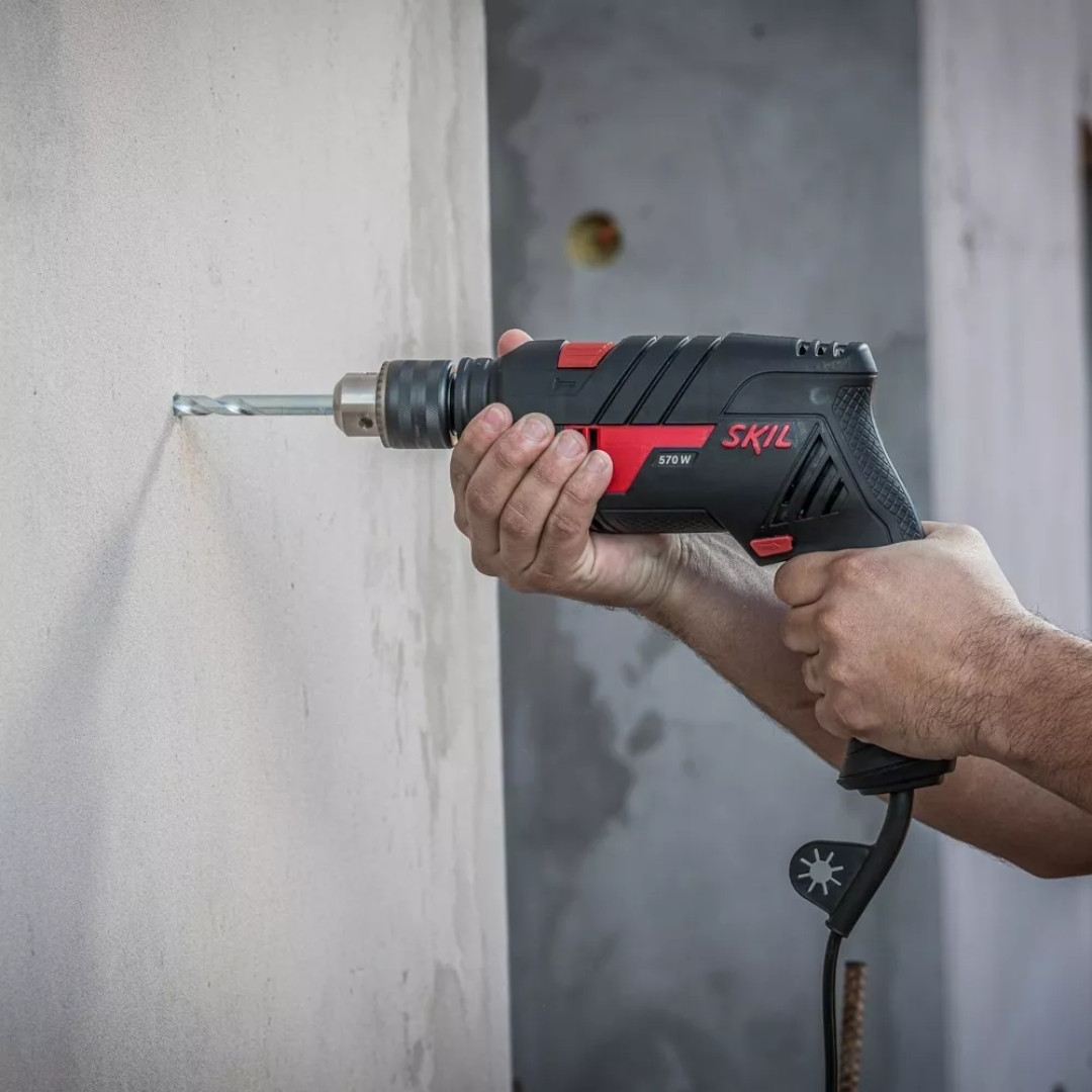 - Potência Excepcional: Com um potente motor de 570W, esta furadeira de impacto lida facilmente com uma ampla variedade de materiais, desde madeira e metal até concreto.