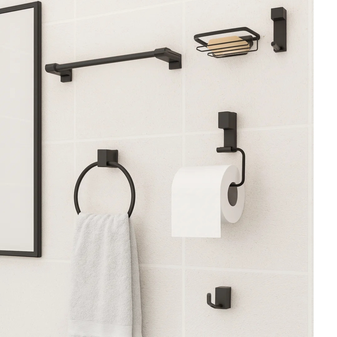 Kit Banheiro Prime Preto Fosco 5 Peças ? JR Metais