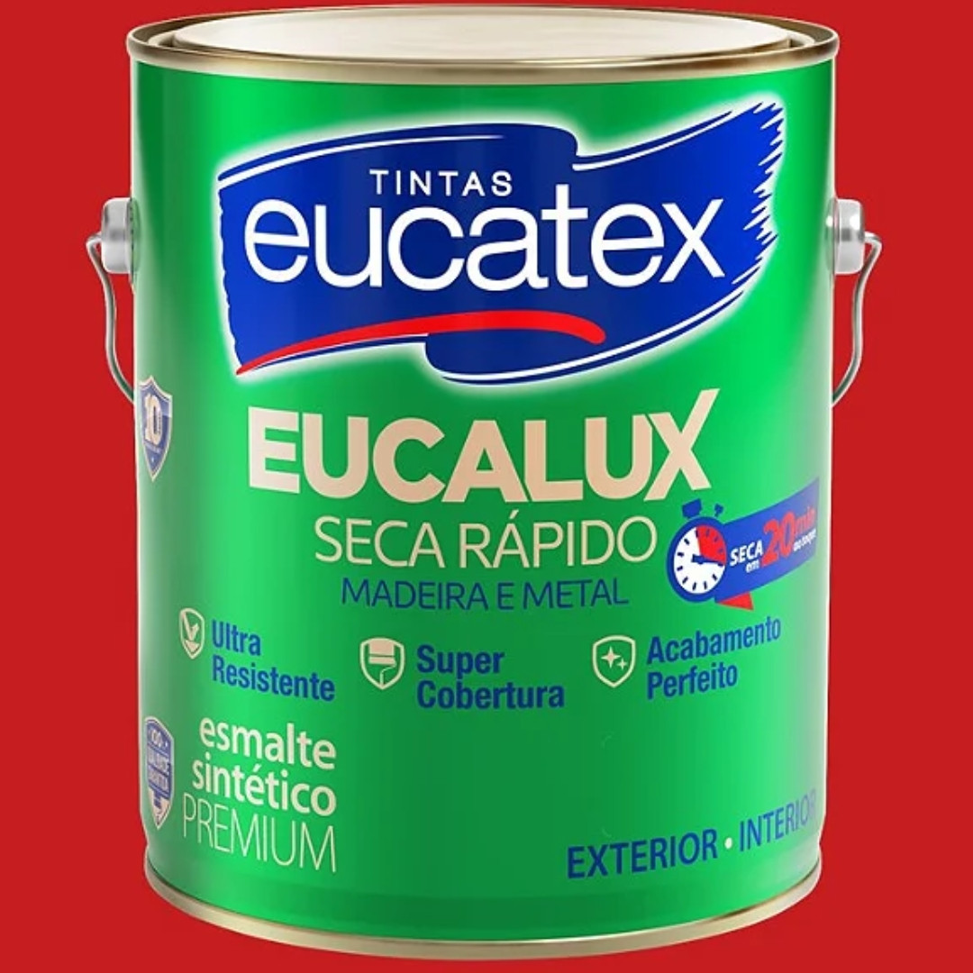 A tinta esmalte sintético Eucatex na cor Vermelha é um produto à base de solvente, desenvolvido para proporcionar proteção, durabilidade e um acabamento sofisticado em superfícies de madeira, metal e outras superfícies devidamente preparadas. Possui alto brilho, excelente aderência e resistência, sendo indicada para uso interno e externo.