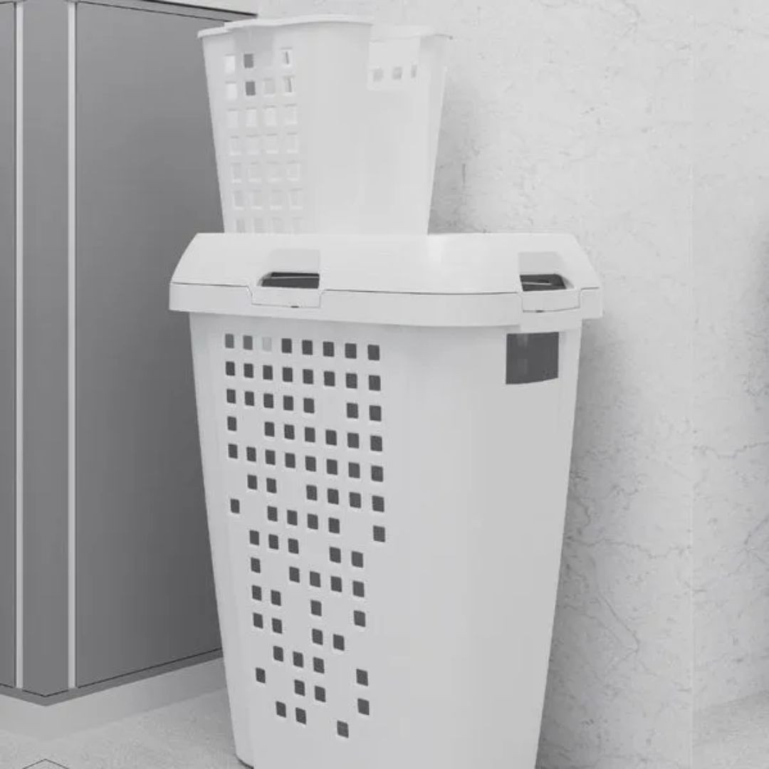 Compacto, pode ser colocado inclusive de lado para aproveitar espaços menores. O design vazado garante excelente ventilação interna, evitando mau cheiro e mantendo as roupas sempre arejadas.
